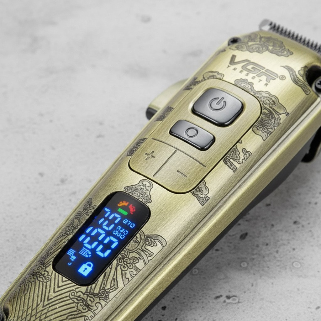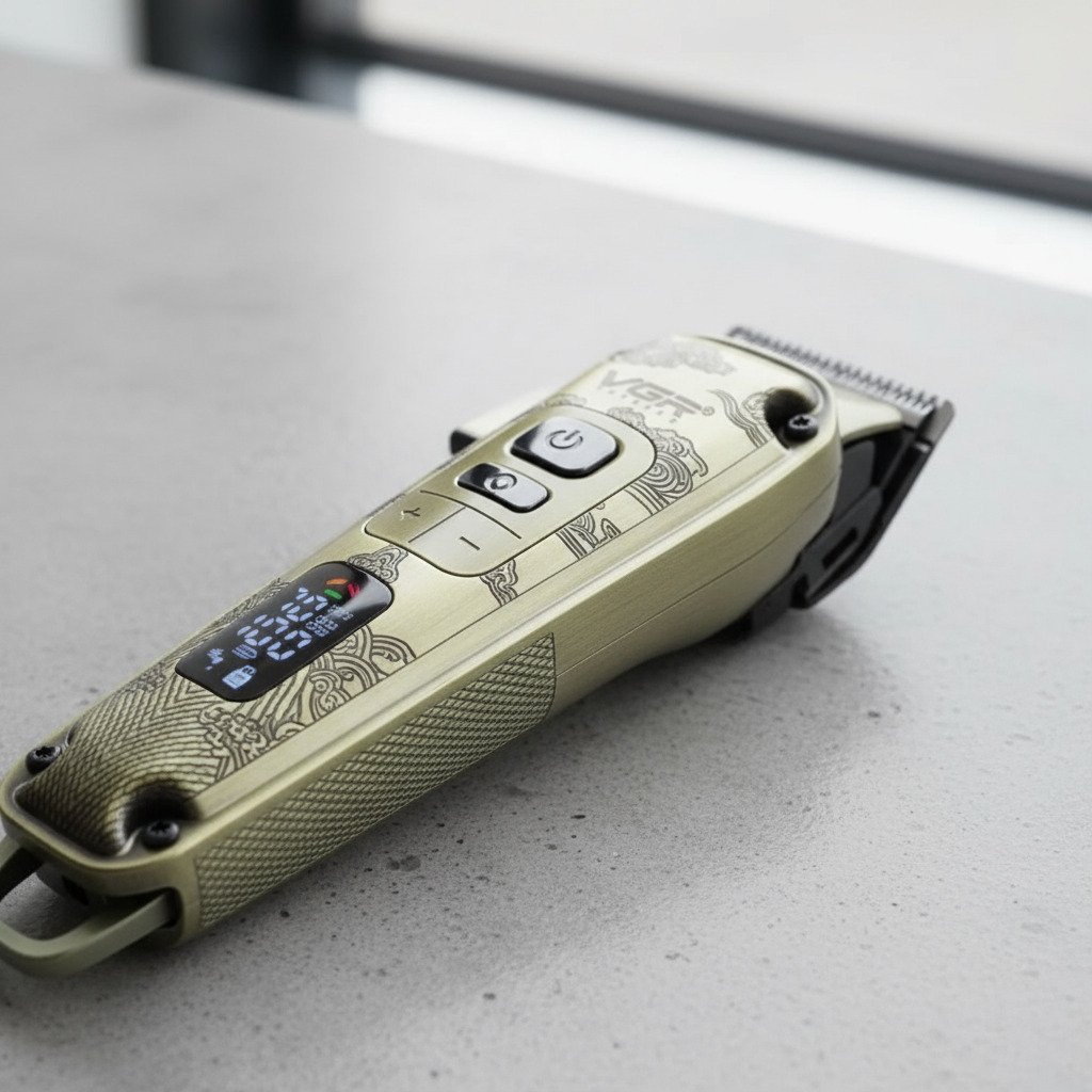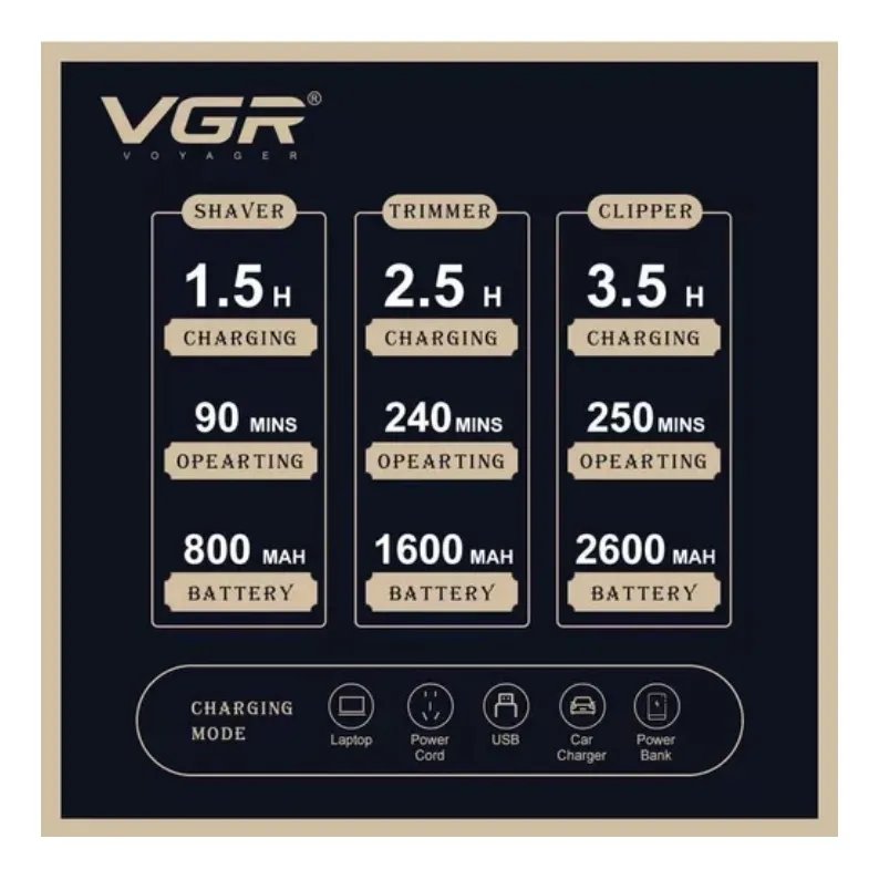 La tondeuse à cheveux VGR V-642 est un appareil moderne et fonctionnel conçu pour l’entretien des cheveux à domicile. Voici un aperçu de ses principales caractéristiques : Moteur puissant : La VGR V-642 est équipée d’un moteur puissant qui offre une vitesse élevée et une performance fiable lors de la coupe des cheveux. Lames tranchantes en acier inoxydable : Les lames sont fabriquées en acier inoxydable de haute qualité pour garantir des résultats de coupe nets et précis. Longueur de coupe réglable : Un réglage de la longueur vous permet de choisir la longueur optimale pour la coupe de cheveux souhaitée. Fonctionnement sans fil : La VGR V-642 fonctionne sur batterie pour une utilisation pratique et sans fil. Conception ergonomique : La forme ergonomique de la tondeuse la rend facile à utiliser et offre un confort optimal pendant la coupe. La VGR V-642 est un assistant fiable et efficace qui vous aidera à conserver une coiffure soignée et élégante en toutes circonstances. Une tondeuse de finition et un rasoir sont également inclus ! Matériau des lames : Acier inoxydable ; Matériau du corps : ABS. Tondeuse : 8 réglages de longueur (1,5 mm, 3 mm, 4,5 mm, 6 mm, 10 mm, 13 mm, 16 mm, 19 mm) ; tondeuse de finition : 4 réglages de longueur (1 mm, 3 mm, 5 mm, 7 mm) ; écran LED ; chargement USB (5 V~1 A) ; autonomie : 250 min ; temps de charge : 3,5 h (0-100 %) ; batterie au lithium 2 600 mAh ; vitesse du moteur : 7 500 tr/min ; puissance : 5 W ; pour hommes ; pour la coupe de cheveux, la taille de la barbe et de la moustache, l’entretien du corps et l’épilation du maillot.