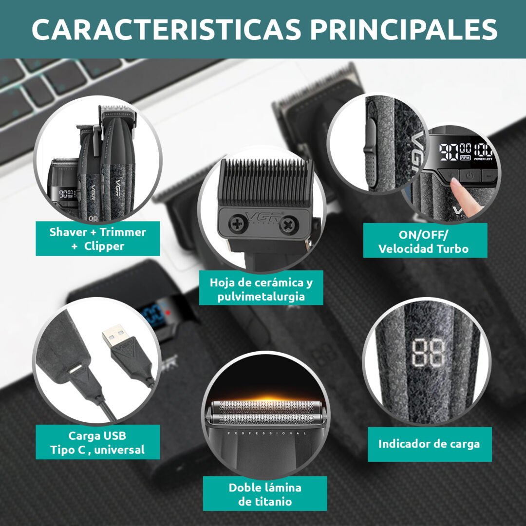 Ensemble 3 en 1 Vgr V-640 S3 Tondeuse à cheveux Rasoir 9000 tr/min Bldc