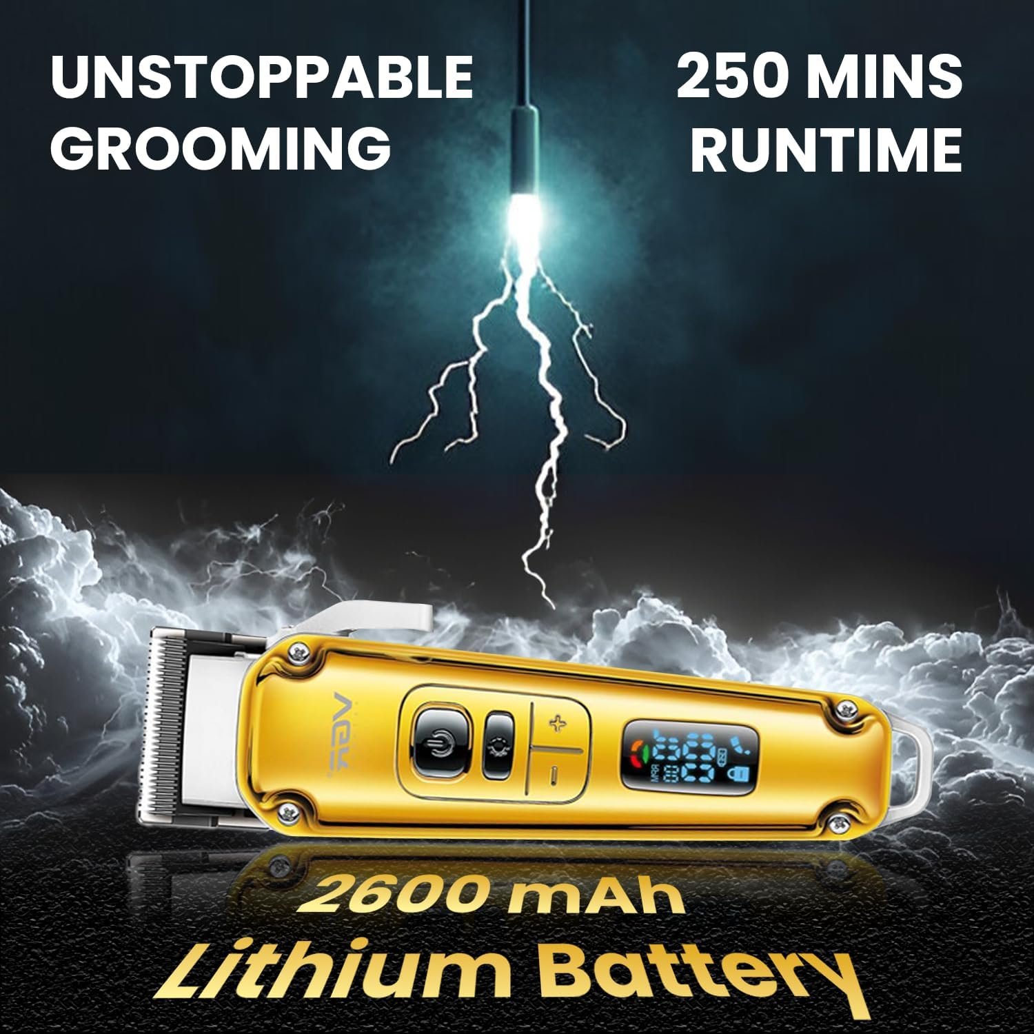 La tondeuse à cheveux est dotée d’une batterie rechargeable au lithium intégrée de 2600 mAh avec un temps de charge complète de 3,5 heures et après une charge complète, la tondeuse fonctionne en continu pendant 250 minutes.